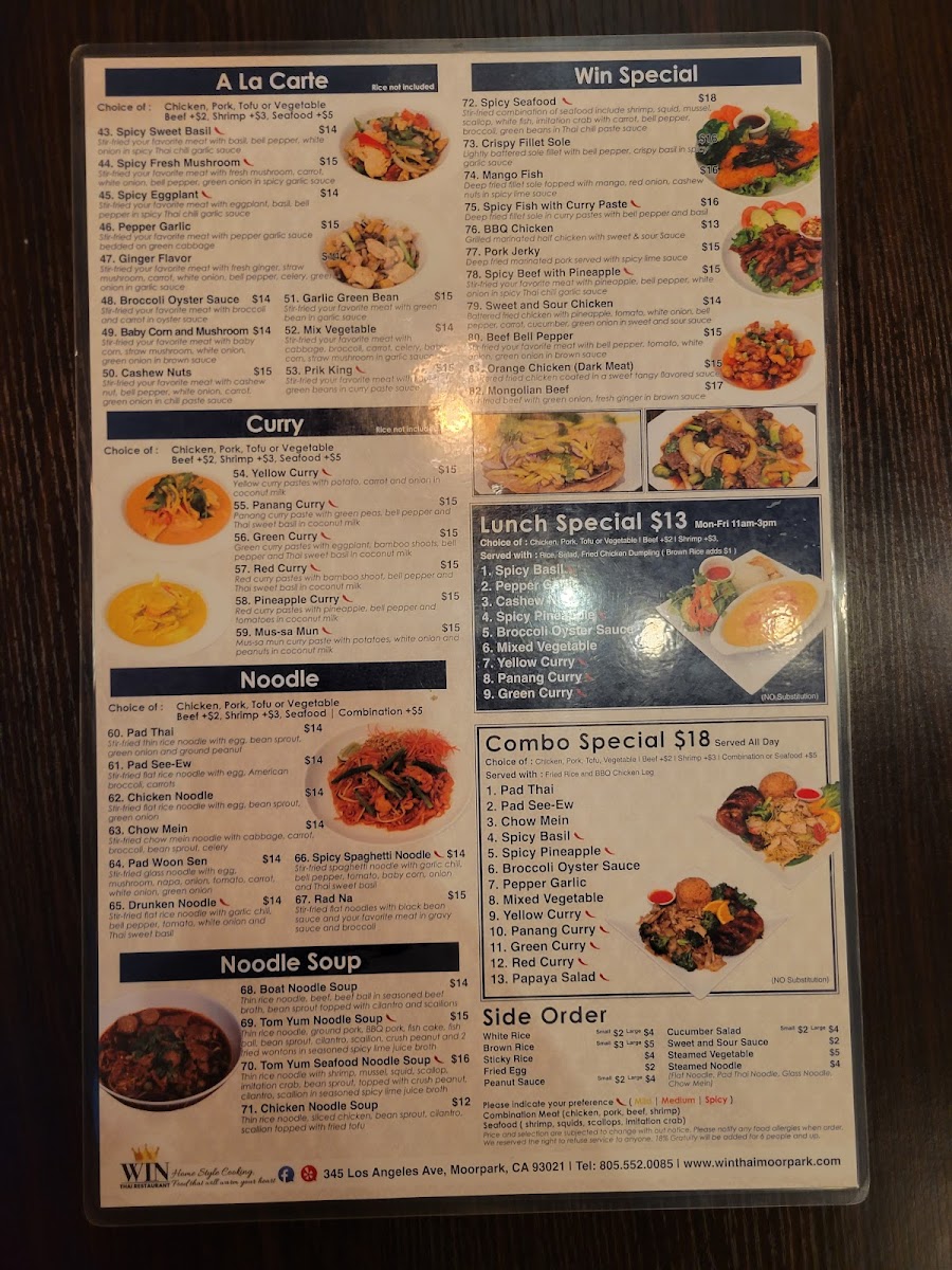 Welcome to Win Thai Restaurant, a delightful hidden gem located at 345 Los Angeles Ave, Moorpark, CA. This family-run establishment is celebrated for its authentic Thai cuisine, providing an inviting atmosphere that enhances the dining experience.